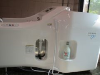(2)本事業の実施により、当法人のデイサービス事業(デイサービスセンター阿知の里)において、開設当初より導入していた介護浴槽(特殊浴槽)が、26年経過し、故障もありました。最新の介護浴槽は、衛生面及び機能・安全性に優れており、重度の利用者や入浴が困難な利用者の受け入れ拡大と、業務効率化、職員の負担軽減を図ります。